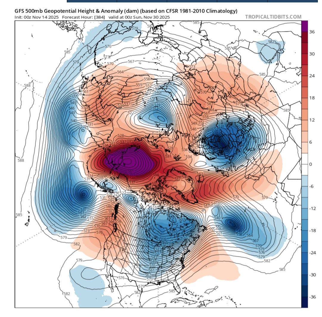 I'd just as soon the cold arrive around/after December 7th, then hopefully give us 6 weeks into late January.