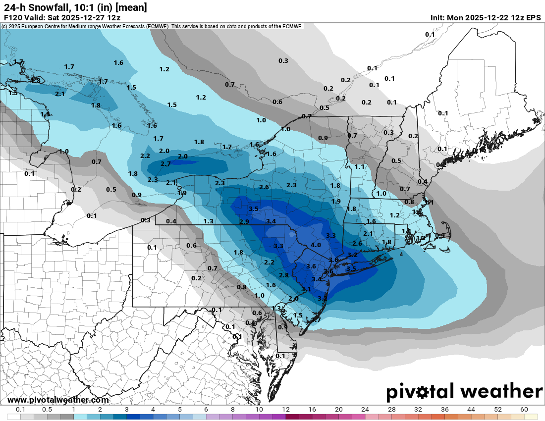 EPS mean snow depth (I don’t have a sub to look at actual quantity on pivotal) moved SW some