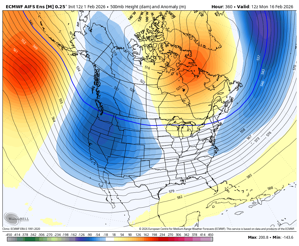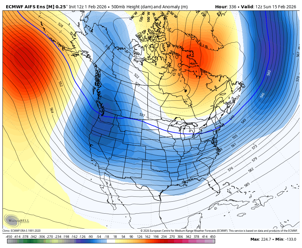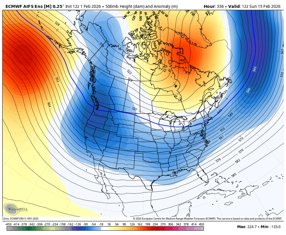 Look at the flow. Canadian air is cutoff. We "might" be a bit BN in temps post frontal passage, but in mid-Feb that's cutting it real close in these parts. Hopefully, the Gefs is right. I don't have much hope in that but that's a better outcome than those maps imho. Moreover, the only precip of consequence on the Eps is a frontal passage around 306 hrs. You can see that on this link if you run it through the entire 12z run. https://www.tropicaltidbits.com/analysis/models/?model=eps®ion=us&pkg=apcpn24&runtime=2026020112&fh=24 This is why I effin' hate counting on long range ensembles as I worried in a post this morning. Among other things, they can change in a couple runs just like operational models and are only good until the next run. -