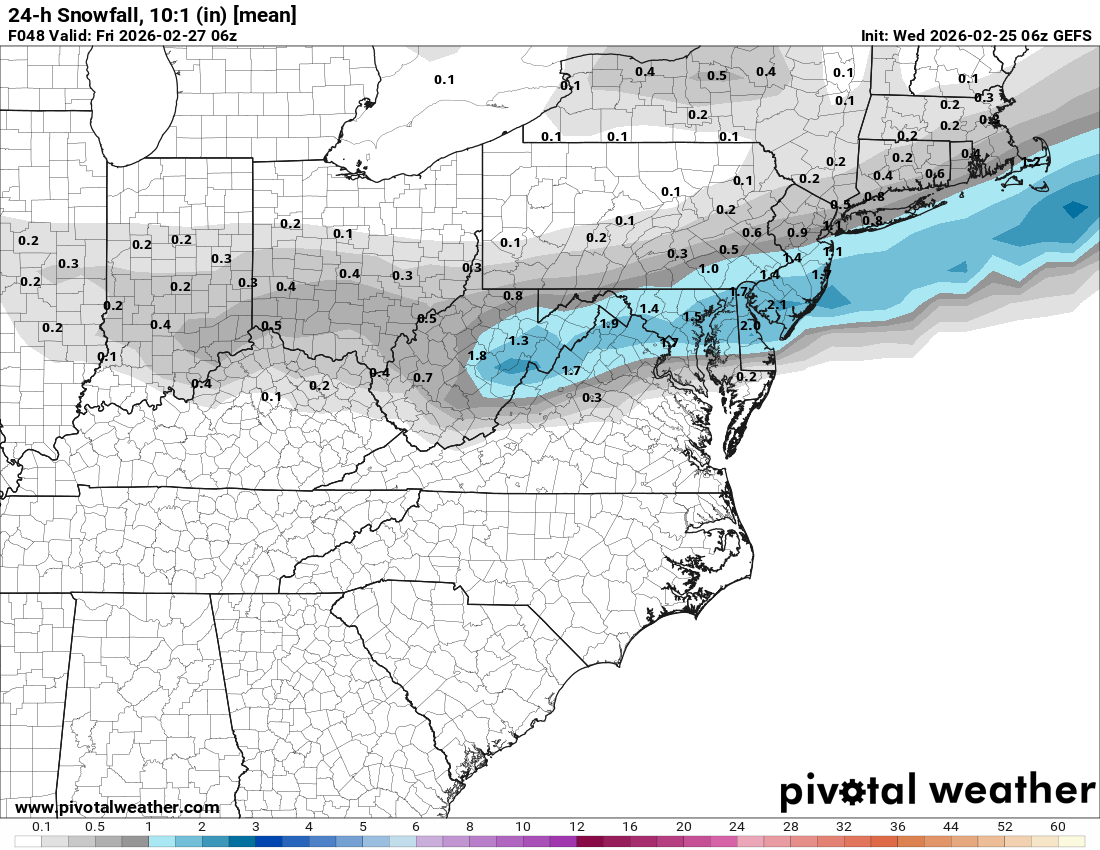 I know usefulness at this point may be questioned, but here's the 24hr snowfall off 6z runs of Eps and Gefs.