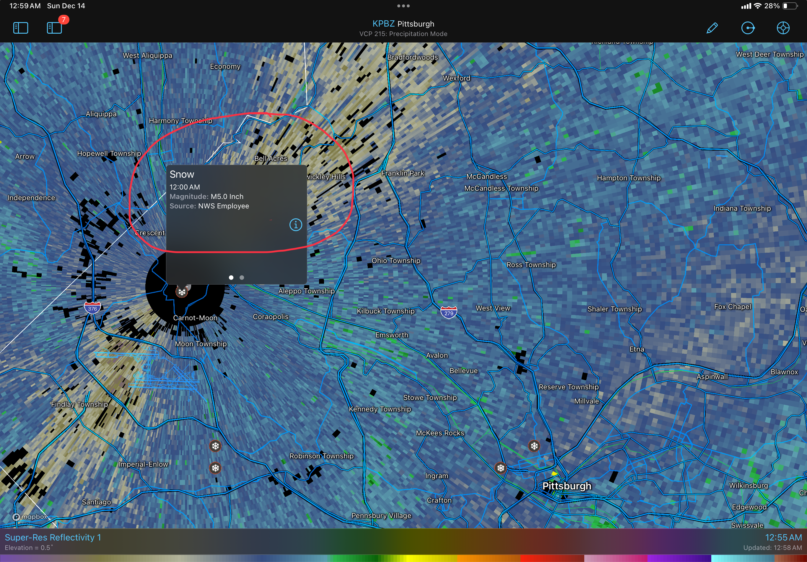 Yeah that is weird...I'm in the area near Good Sam and I believe it's all snow now. Grass, cars, and a bit of sidewalk all coated. -