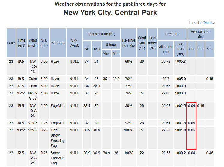 Well, she doesn't have a weather background. It's possible she stopped doing that but I'm fairly certain at one time she said she did wipe the board every hour. I'm not sure, I don't know who does their measurements or where they're done. It could be that the wind made the measurement inaccurate. -