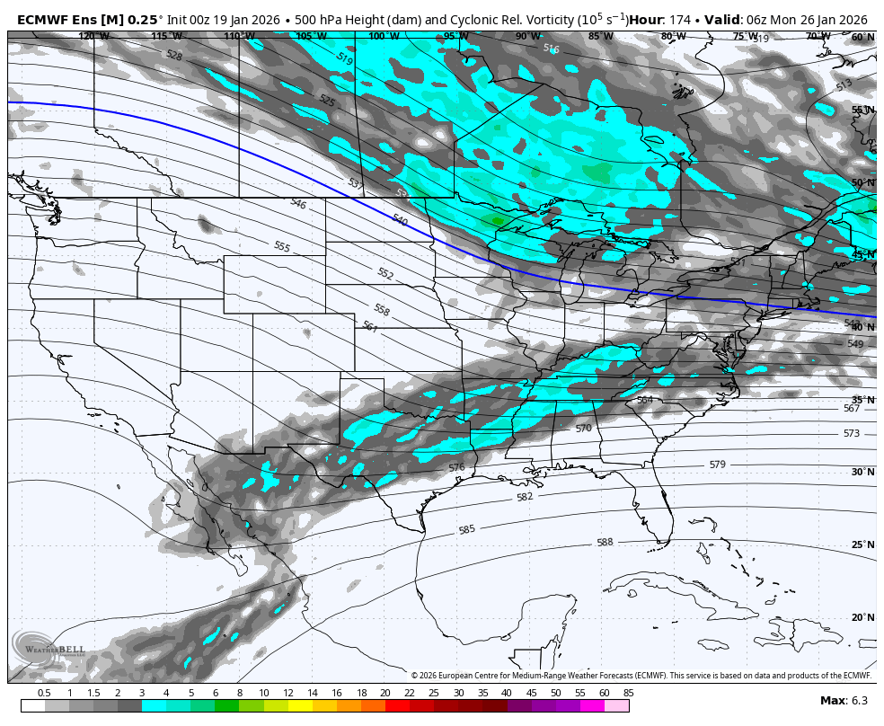 I'd be nervous if we were in the bullseye this far out as these things almost always come north. Having models keeping this south 6 days out is not a bad thing