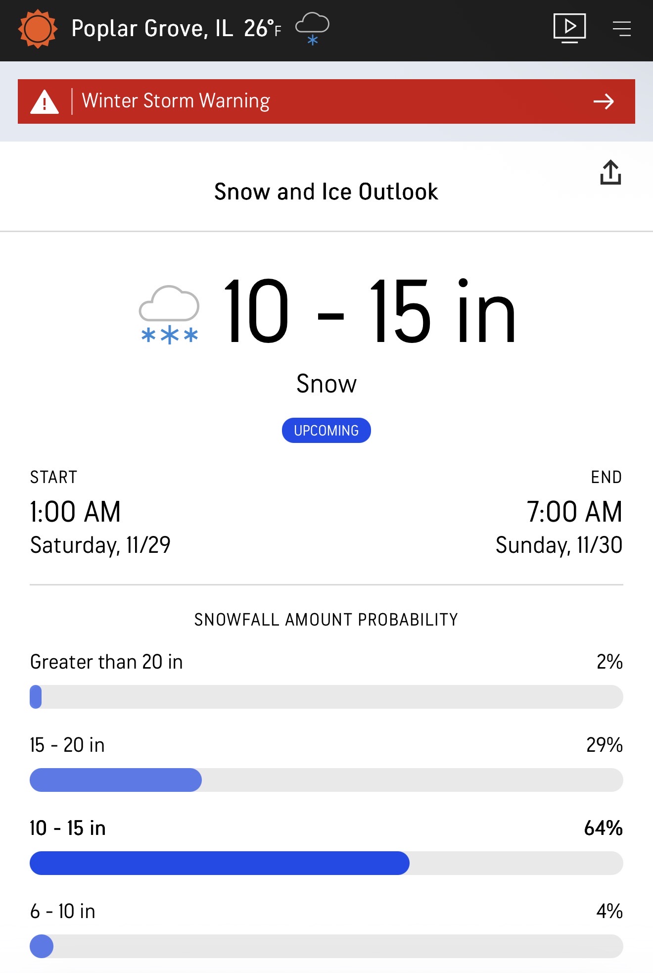 I’m not sure where Accuweather pulls out their probability percentages. But I would say throwing a 30% chance on a 15 inch minimum seems a little extreme/careless. -