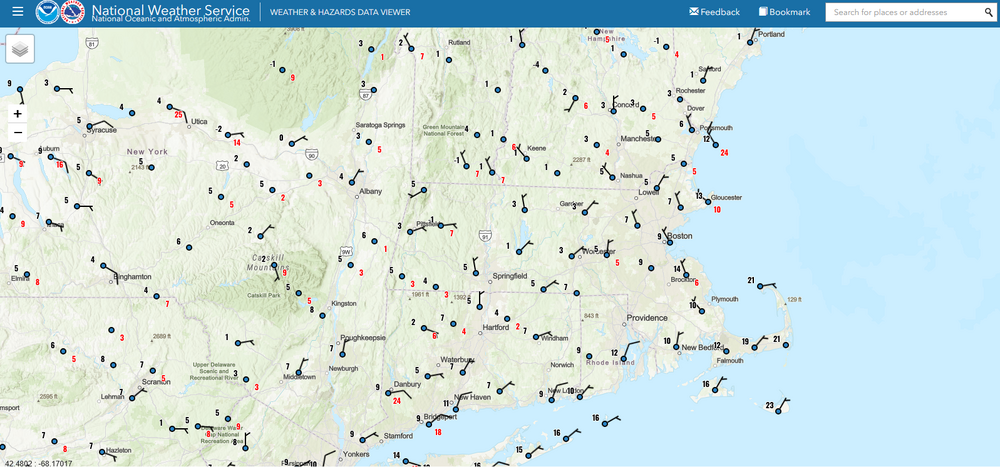 Records: Highs: EWR: 59 (2024) NYC: 60 (1967) LGA: 57 (2024) JFK: 55 (2024) Lows: EWR: -1 (1935) NYC: 2 (1945) LGA: 2 (1945) JFK: 5 (1961) Historical: 1821 - The Hudson River was frozen solid during the midst of the coldest winter in forty-one years. Thousands of persons crossed the ice from New York City to New Jersey, and refreshment taverns were set up in the middle of the river to warm pedestrians. (David Ludlum) 1837 - At 7 PM a display of the Northern Lights danced above Burlington, VT. Its light was equal to the full moon. Snow and other objects reflecting the light were deeply tinged with a blood red hue. Blue, yellow and white streamers were also noted. (The Weather Channel) 1937: Las Vegas, Nevada dropped to 8 degrees above zero, setting a record low for the city. 1949: Las Vegas, Nevada, recorded 4.7 inches of snow. This brought the monthly snowfall total to 16.7 inches which still ranks as their snowiest month on record 1965 - Alta, UT, was in the midst of a storm that left the town buried under 105 inches of snow establishing a record for the state. (David Ludlum) 1987 - The second major storm in three days hit the Eastern Seaboard producing up to 15 inches of snow in Virginia, Maryland and Delaware. Up to 30 inches of snow covered the ground in Virginia following the two storms. (National Weather Summary) (Storm Data) 1988 - High winds created blizzard conditions in the mountains of Colorado. Winds gusted to 109 mph at Echo Lake, and a wind gust to 193 mph was reported atop Mount Evans. A "nor'easter" moving up the Atlantic Coast spread heavy snow from the Carolinas to New England, with as much as 16 inches reported in the Poconos of eastern Pennsylvania. (National Weather Summary) (Storm Data) 1989 - Bitter cold air, coming down from Alaska, settled over the Northern Rockies. Wilson WY reported a morning low of 48 degrees below zero. Thunderstorms produced severe weather in the south central U.S. One thunderstorm in north central Texas spawned a tornado which injured three persons at Troy. (National Weather Summary) (Storm Data) 1990 - Low pressure developed explosively over east central Missouri and moved into Lower Michigan producing high winds and heavy snow across parts of Iowa, Illinois and Wisconsin. Wind gusts to 60 mph and up to a foot of snow created near blizzard conditions in southeastern Wisconsin and northern Illinois. Wind gusts in Indiana reached 76 mph at Wabash. Thunderstorms associated with the storm produced wind gusts to 54 mph at Fort Madison IA. (National Weather Summary) (Storm Data) 2000 - Heavy snow fell from the Carolinas to New England, with up to 20 inches of snow and five deaths reported. (NCDC) Jan 25, 2000: 5.6 inches of snowfall (combo of mix / dry slotted kept totals down) Other areas 6 - 12 inches, more north and the mid atlantic