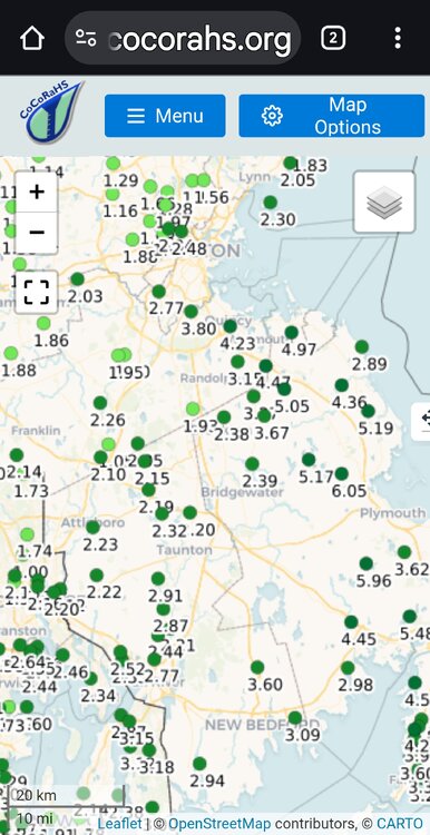 Closest cocorahs has me at 0.85" since Saturday. Not bad. -