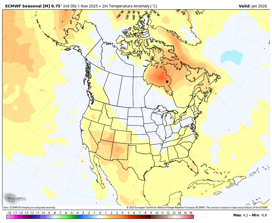 That much colder Jan vs the prior run is likely imho due to the increased support by a decent portion of the 100 ensemble members for a major SSW in late Nov or early Dec when considering the typical timing of the lagged cold. If this early SSWE were to actually occur, I’d expect Jan to verify even colder than this. But if it doesn’t, it could very well verify warmer like the prior run you showed.
