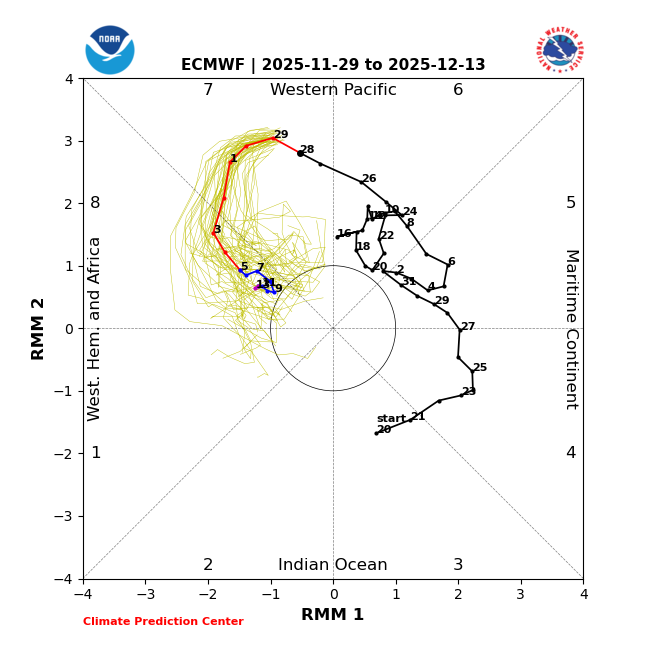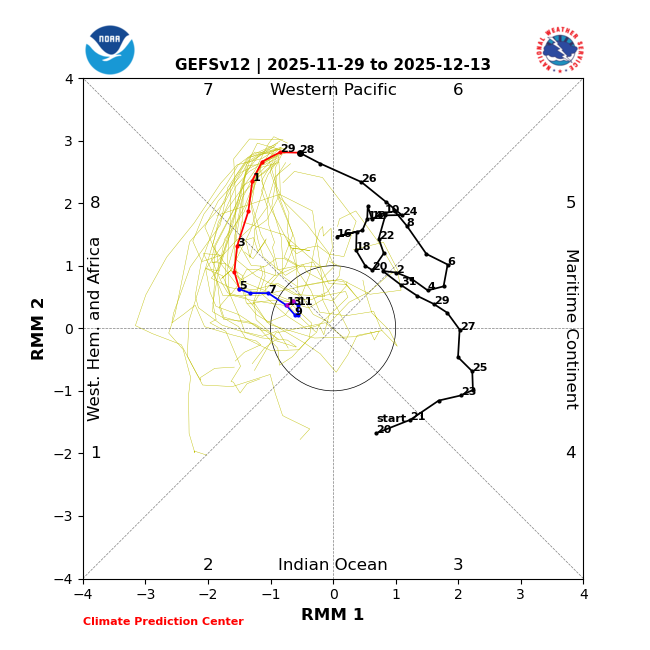 MJO from today’s 2 week runs: both now have 11+ day long phase 8s, longest since Feb 2010 and longest Dec since 1975. GEFS is all in 8 12/3-13 vs yesterday’s 7 for same period: EPS is same as yesterday: