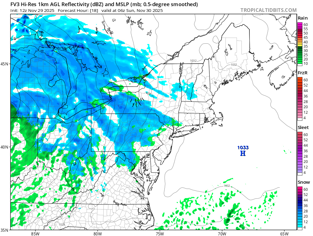 Just going to include tonights little thump in this thread. FV3 and 3k both have it. RGEM not so much.