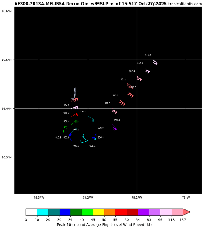 Yeah, I think Melissa is still deepening. Just a violent hurricane. 11am NHC discussion said the NOAA aircraft had to bail out earlier because of the extreme turbulence.