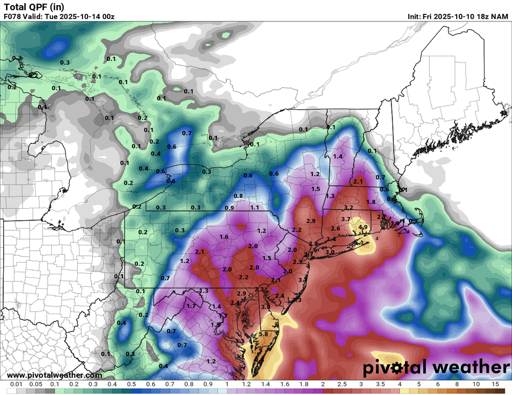 "Potentially" powerful Nor'easter Sun-Mon 10/12-13/25 with needed rain-especially south of I84, and fairly high impact sct coastal gusts 50+ MPH and possibly moderate or greater coastal flooding at the midday Sun and Monday high tide cycles.