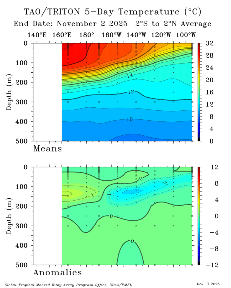 Here is the latest subsurface from November to present. The wind anomalies have all but halted but things are primed if we get another solid weakening event of trades. Right now we are just maintaining the Nina SST profile. I will say it is fascinating to see how active the sun has been going into winter and us getting a pronounced -NAO periods showing up now multiple times. -