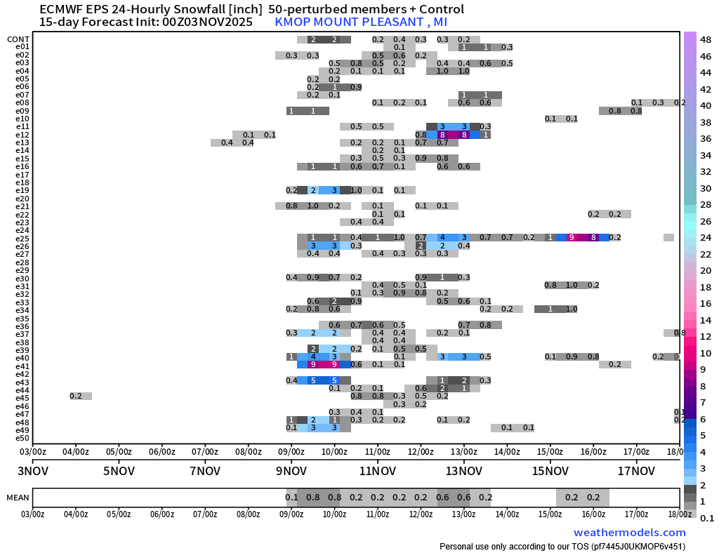Past few runs of the EPS really trying to sell our first snow chcs of the season up here. Something to keep an eye on, fs