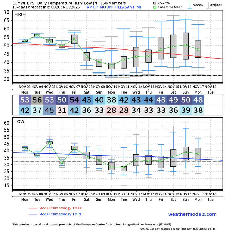 After having a few chilly runs in late Oct for the period around Veteran’s Day and then backing off to mild, the model consensus since Nov 1st has gotten much colder for then with the last few runs being the coldest yet!