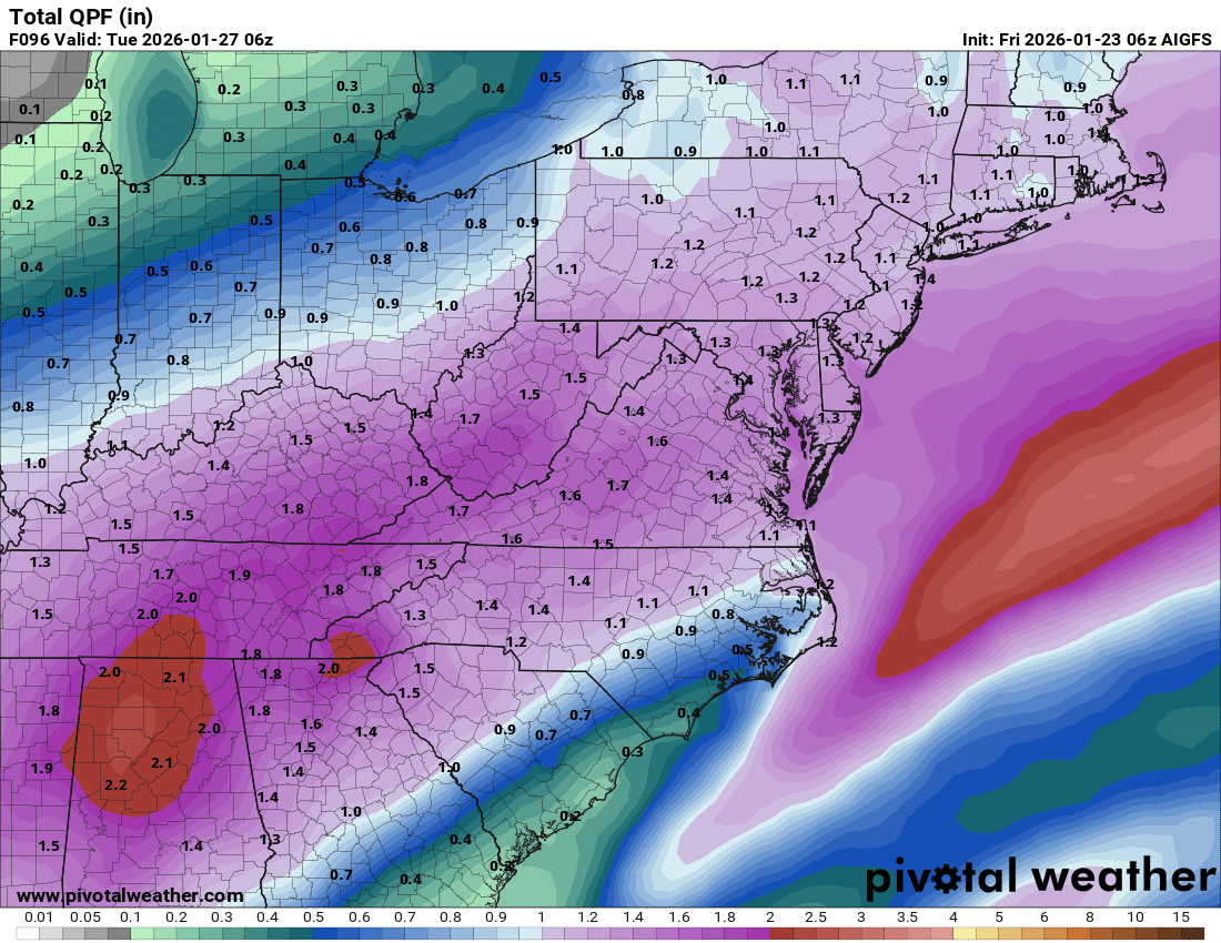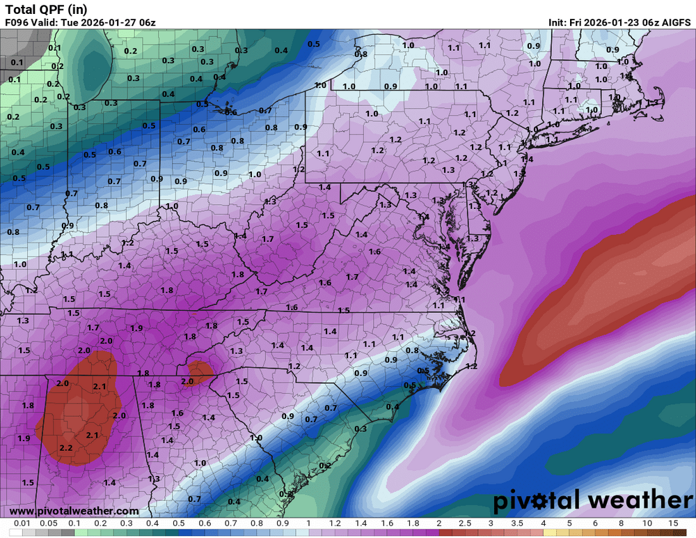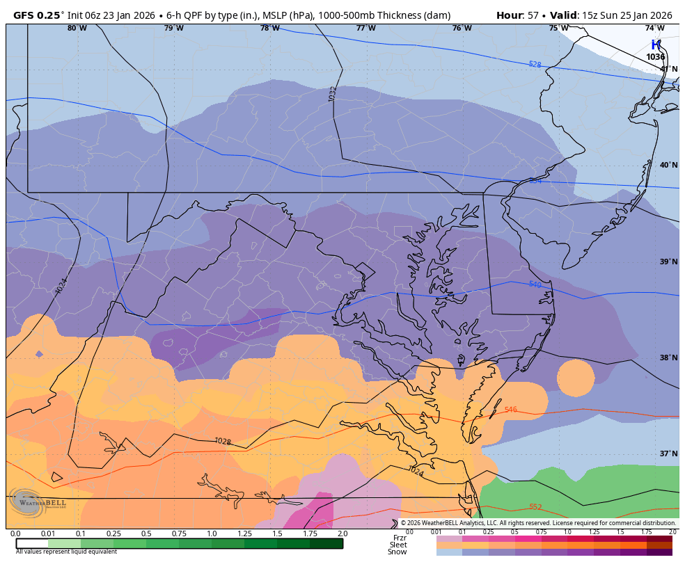 Room also in LWX's forecast for DCA: Saturday Night Snow. The snow could be heavy at times. Low around 17. Northeast wind 3 to 6 mph. Chance of precipitation is 100%. New snow accumulation of 3 to 7 inches possible. Sunday Snow, freezing rain, and sleet. The snow could be heavy at times. High near 27. Northeast wind 8 to 10 mph. Chance of precipitation is 100%. New snow and sleet accumulation of 3 to 7 inches possible. Sunday Night Snow, freezing rain, and sleet before 10pm, then snow and freezing rain between 10pm and 4am, then a chance of snow after 4am. Low around 20. Chance of precipitation is 90%. New snow and sleet accumulation of around an inch possible.