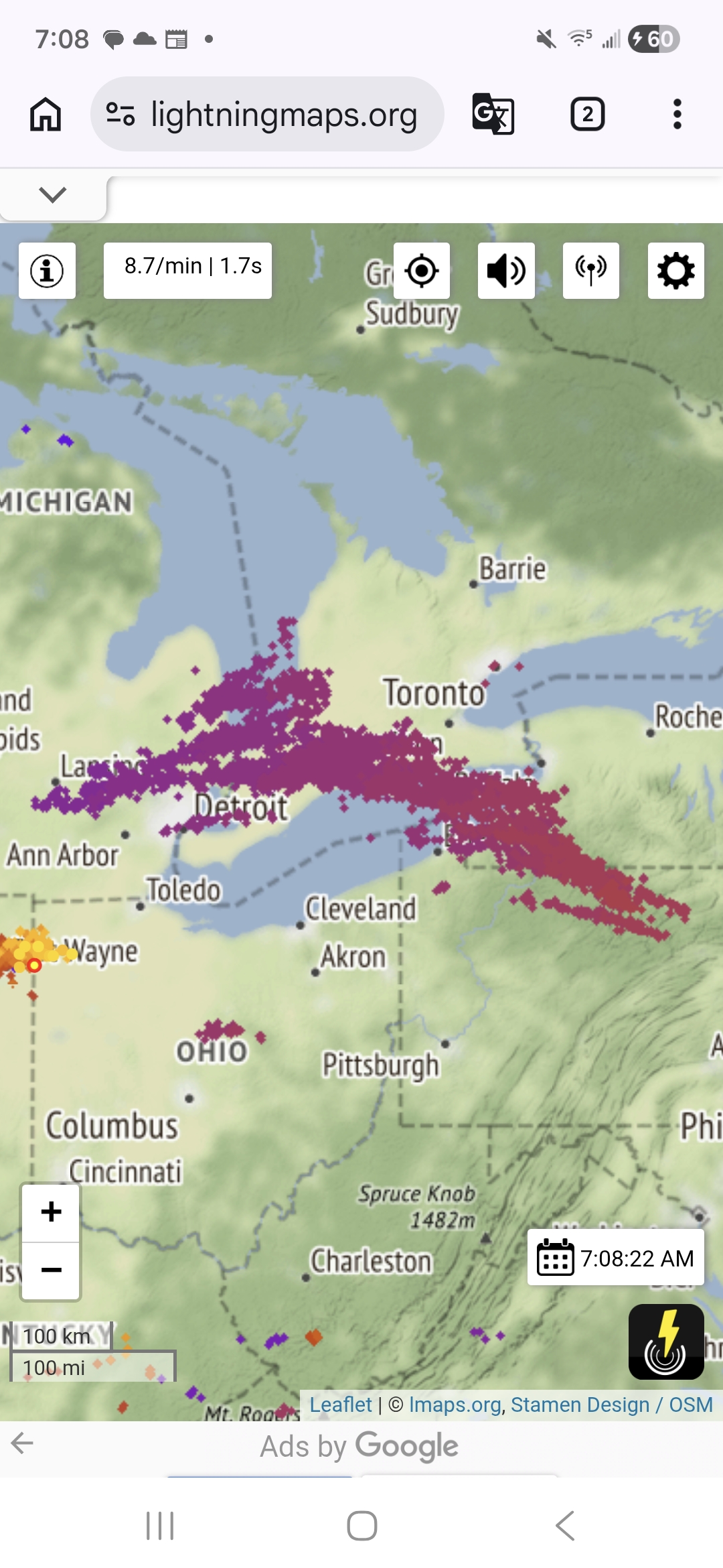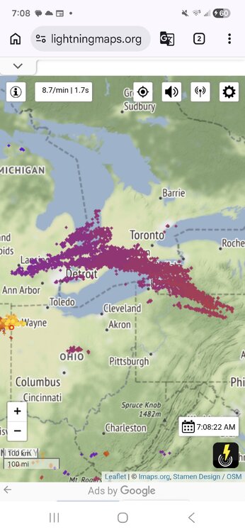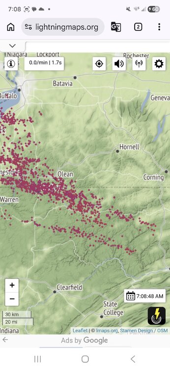 I just went back and checked these storms out. It definitely was a impressive cluster all things considered. It started putting down lightning in Charlotte Michigan and didn't stop putting down consistent strokes until somewhere around State Gamelands, 114 in the Northern Allegheny Plateau. -