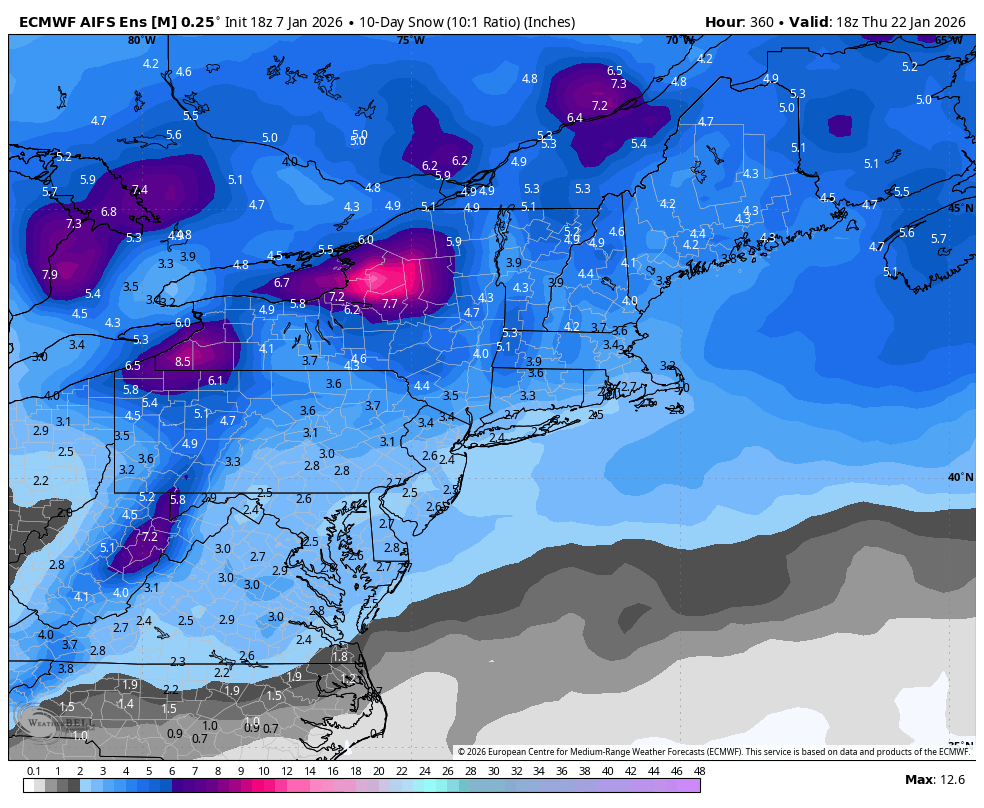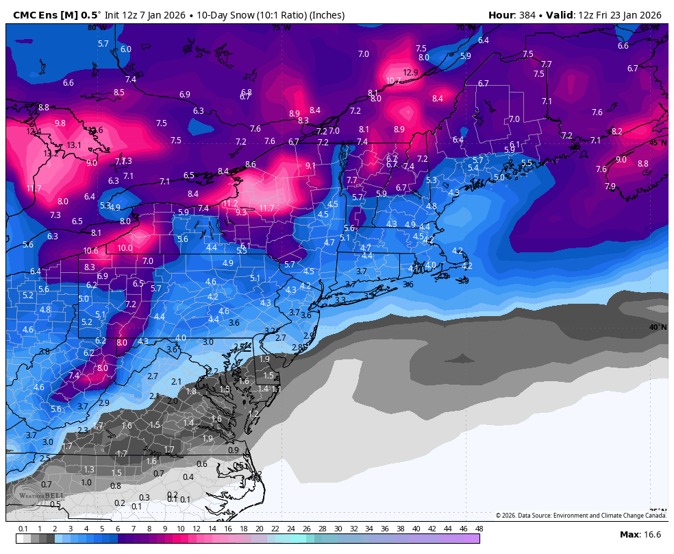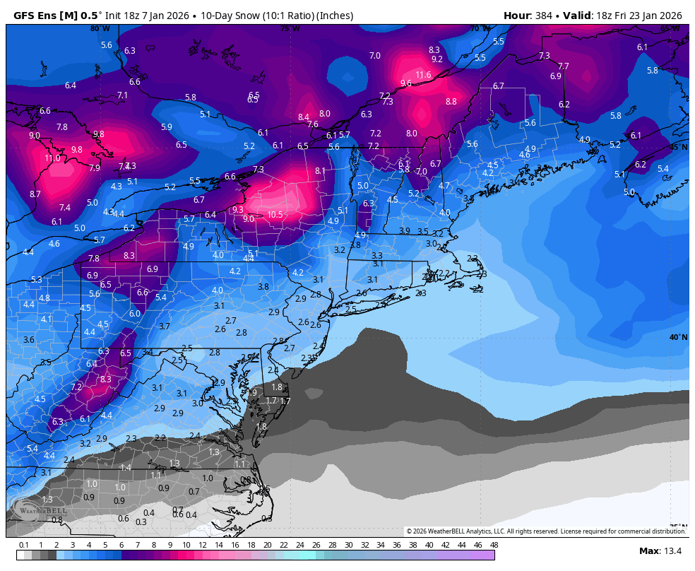 @mitchnick @Ji The ensembles are starting to beef up their snow amounts today for the last 10 days of their runs. 12z Canadian ensemble got it started. 18z GEFS & 18z AI EPS really ramped up. Hopefully this continues to build up as most of the potential is from day 9 onward.