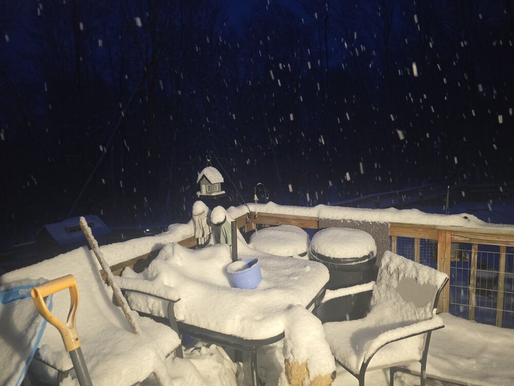 7. Arctic front just arrived. Puking snow wind picking up temperature starting to drop slowly let’s see if it actually tanks . Should get 1.5-2” here
