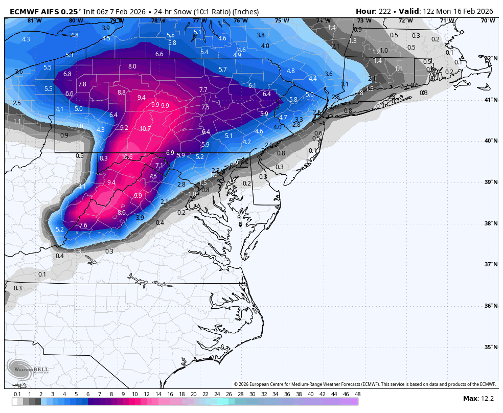 11. Euro ai and gfs ai like Presidents’ Day…. Little warm for nyc south big totals north and New England