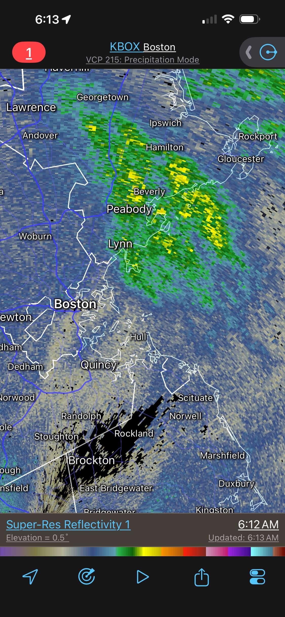 3. Someone between Peabody and Gloucester is about to get over a foot of snow.