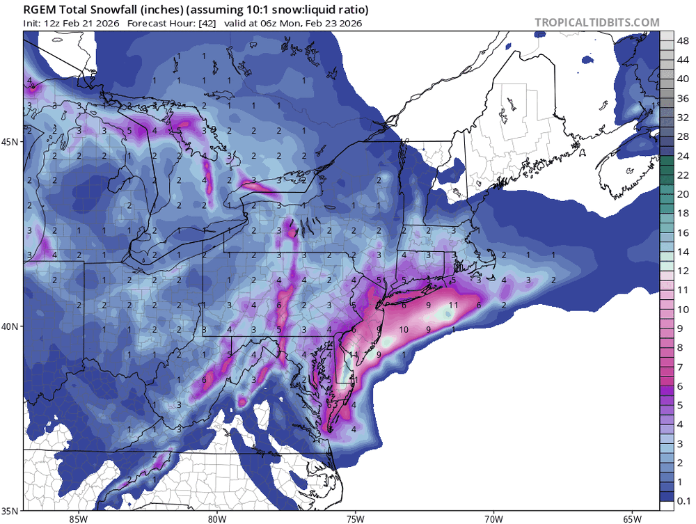2/21 18z RGEM Total QPF 2/22 - 2/23-24 V Snow 10:1