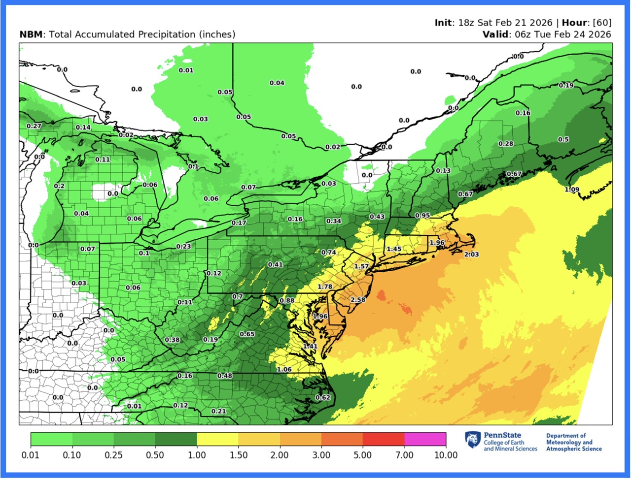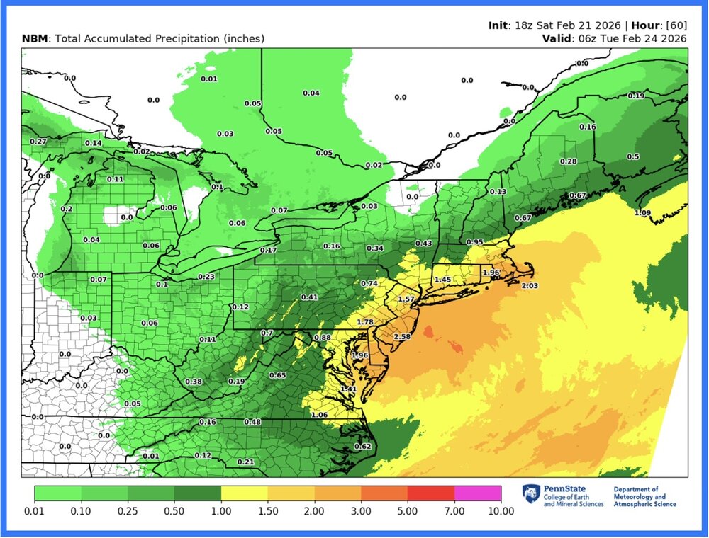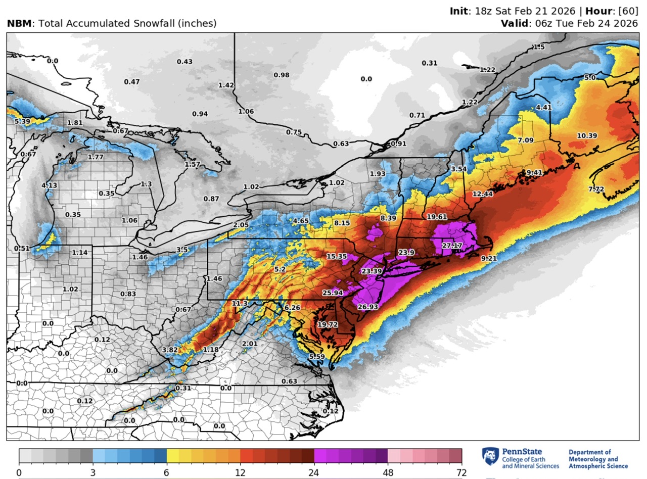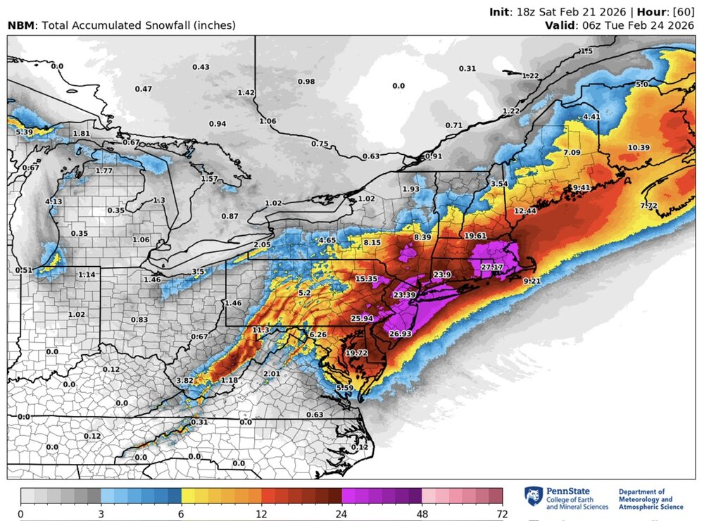 Legendary move by a legendary OG poster for what looks to be a legendary storm. A few key synoptic variables in flux to determine place in history is timing of maturation... yesterday trended later / better for SNE vs. today trended a bit earlier / better for Philly/NYC/LI... could be in flux through Sunday. And obviously track... today maybe trended better tucking more NW on mesos. 19z NBM output... along with the winds, this is shaping up to be historic: