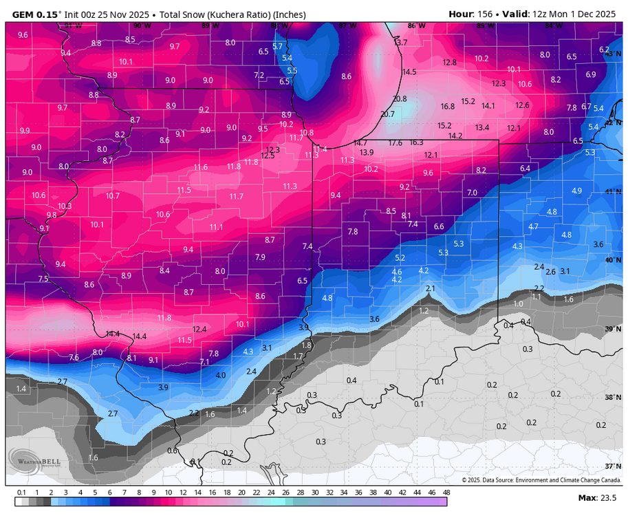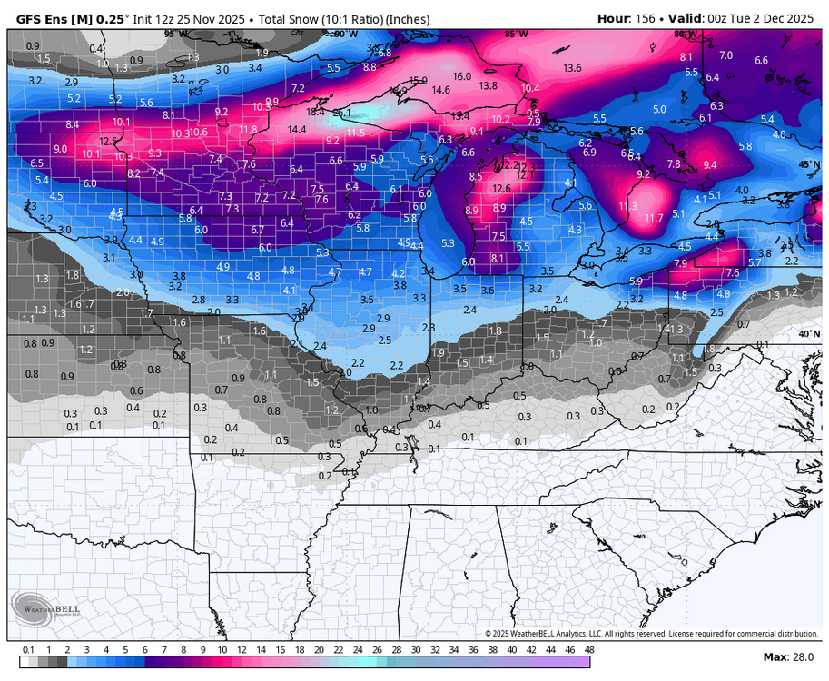 If it's at all helpful, I know that Tropical Tidbits offers some euro AI data with Pivotal Weather having a more extensive selection of publicly available products, including basic snowfall output for the euro AI and maybe its ensemble. https://beta.pivotalweather.com/models/ecmwf_aifs/sn10_acc-imp/conus?run=2025112412&forecastHour=156 -