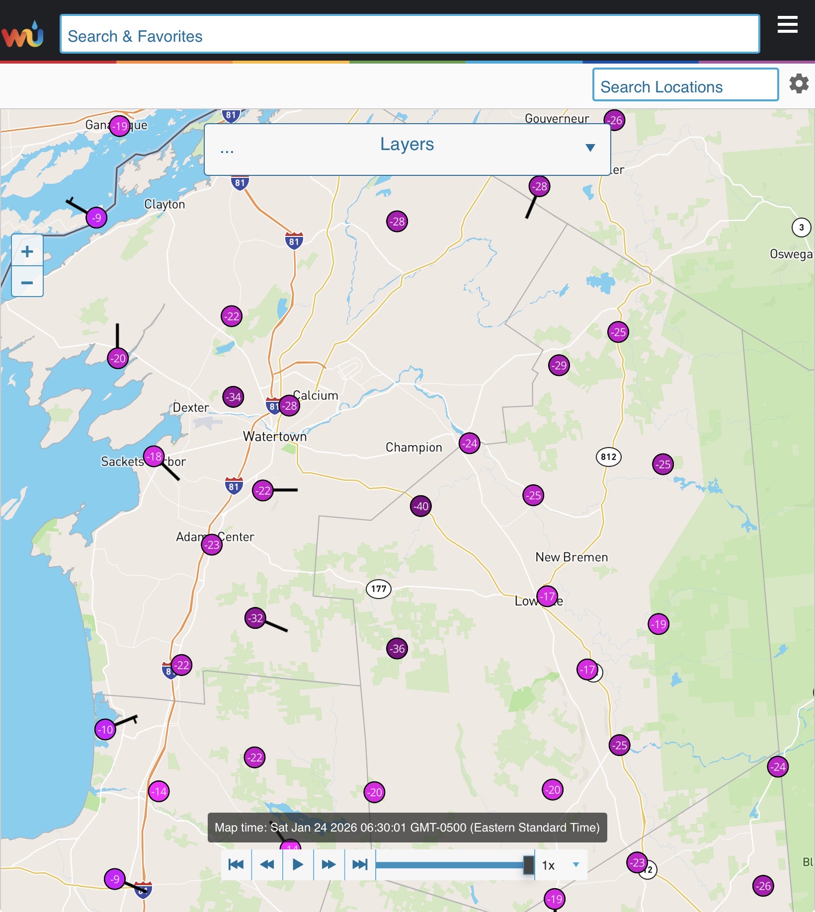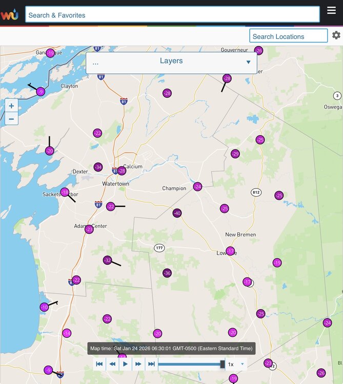 -40° in Copenhgen NY You can see the -30s to -40 pretty clearly across MN, WI, MI, ON, NY on IR radar as the snow surfaces show up green on this image. -