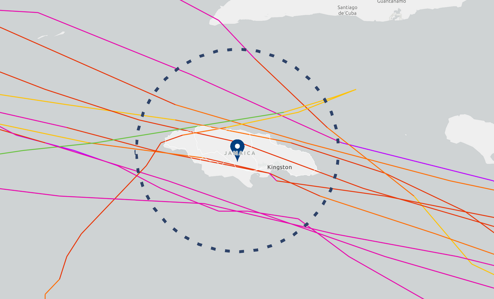 Jamaica's major hurricane history is not that extensive. Since 1900, only 4 major hurricanes have made a direct hit on the island: Unnamed 1903 (Cat 3 / 105kt) Unnamed 1912 (Cat 3 / 100kt) Charlie 1951 (Cat 3 / 110kt) Gilbert 1988 (Cat 4 / 115kt) Additionally, the 1903 hurricane, Charlie, and Gilbert all cut through the island from east to west relatively quickly. The 1912 hurricane hit the western tip. So, Melissa's forecast intensity (strong Cat 4 or Cat 5), slow forward speed, and angle of approach all combine to make this a highly unusual situation.