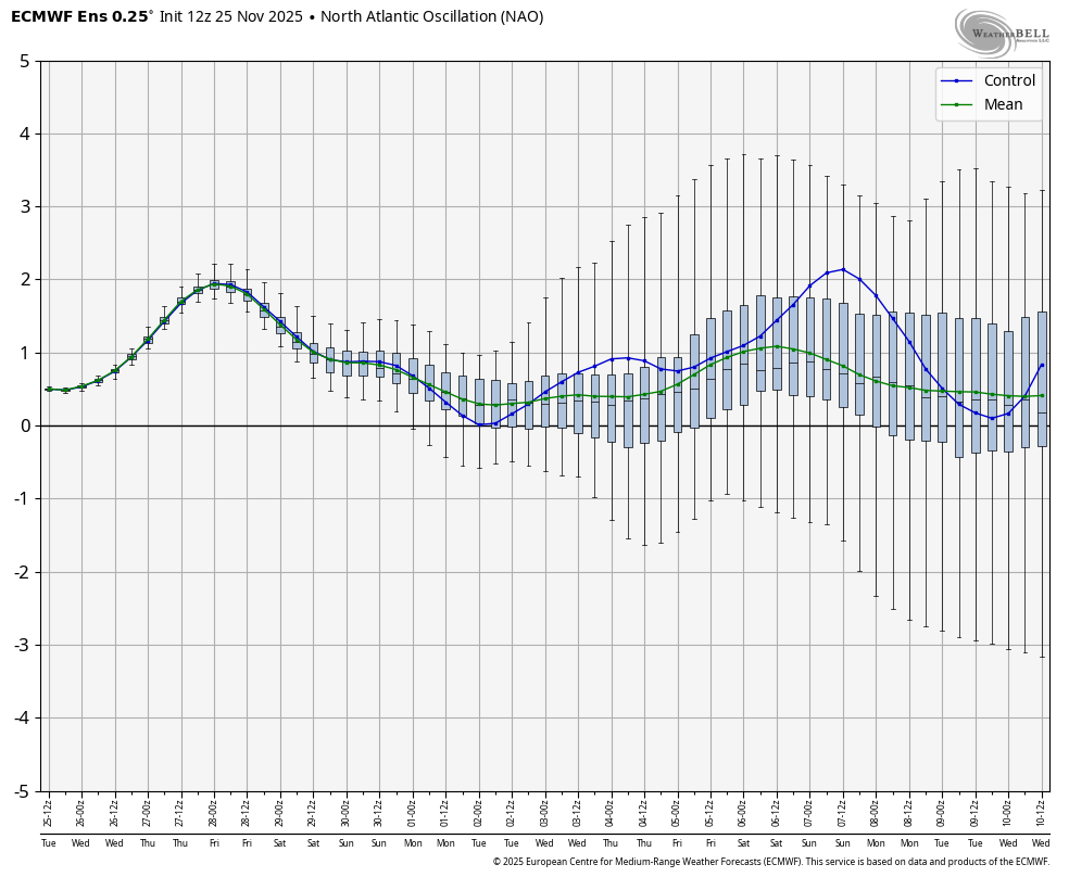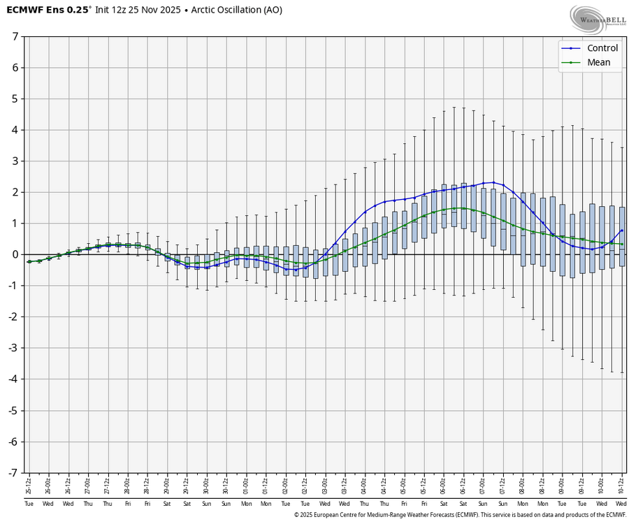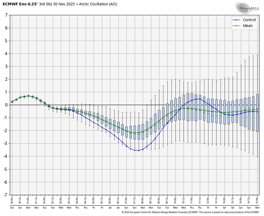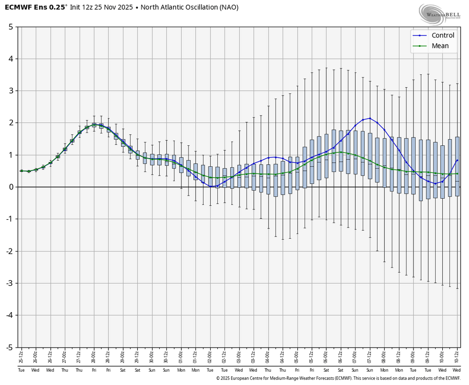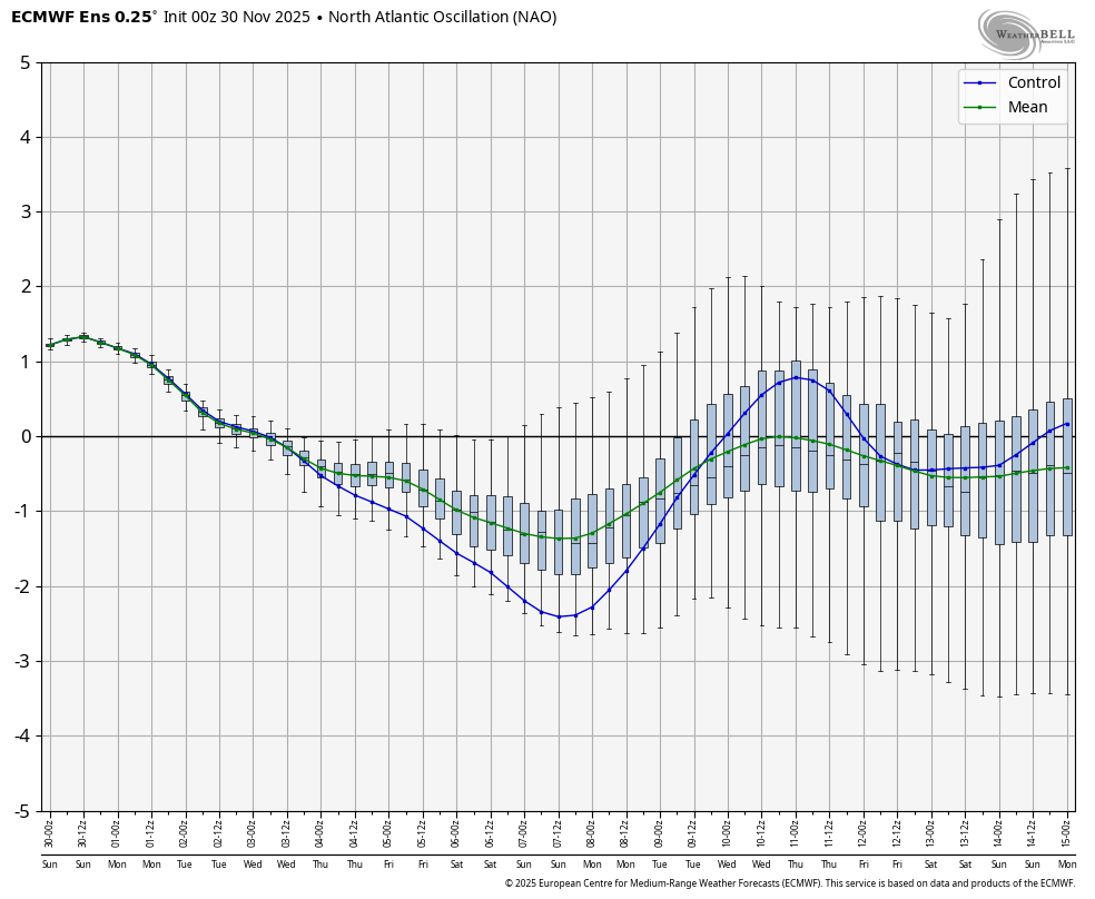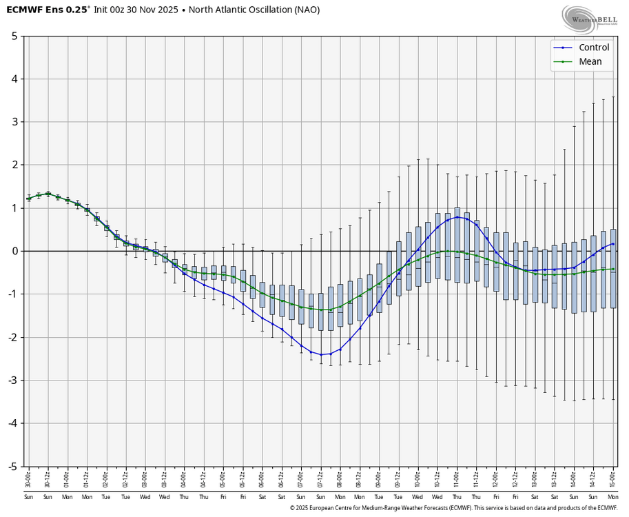 This reminds me of the models being initially oblivious to the upcoming -NAO/-AO that appeared after the 2/16/2023 major SSW: EPS 11/25 12Z run: all +NAO EPS 11/30 0Z run: almost all -NAO including as early as Dec 4th, when 11/25 run had +NAO Similar comparisons for AO: EPS 11/25 12Z run: EPS 11/30 0Z run: like night and day