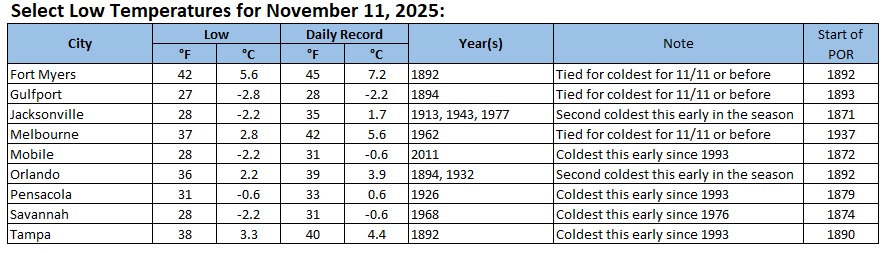 Record cold in the South