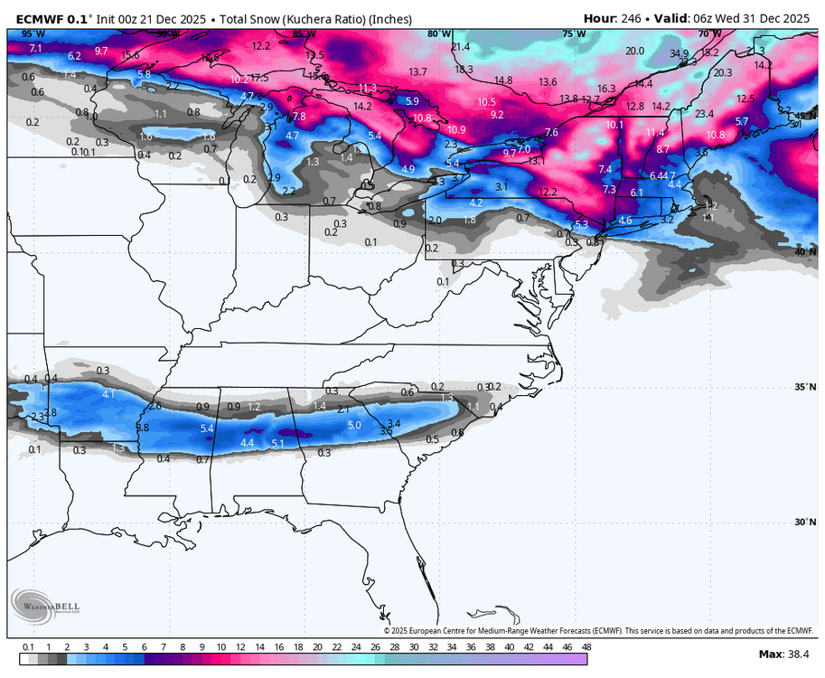 5. Don’t look at the 0Z Euro….or better yet look at it OMG! Many NC peeps won’t be thrilled but anyway: this is for 12/30 to early 12/31:
