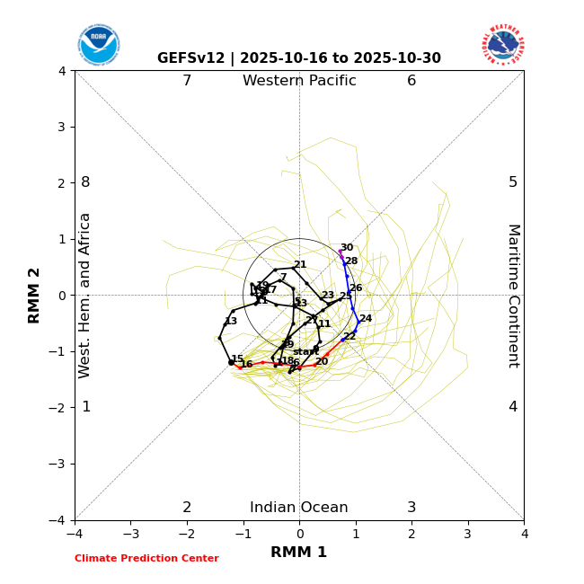 Yeah, weaker amplitude MJO through 4-6 than last year which was what I was expecting. The strong amplitude October MJO 4-6 years like 2024, 2020, and 2017 preceded the stronger +PNAs from December into January. The weaker years like 2022, 2021, and 2016 had a lower PNA. So this fits with my early thinking that this winter will be warmer than last year. But my guess is that there could still be some +PNA intervals but not to the extent of last winter. Snowfall is a bit more of a wild card. Since the snows were so low winter, it wouldn’t take much for an equal or better snowfall outcome. But that won’t be known until I see the December snowfall indicator. I am hoping that we can change up the dominant cutter,hugger,and suppressed Southern Stream storm tracks at least for a few weeks to maybe one month. That will probably be MJO dependent and not known until we get close to the time it starts showing up the medium range models.