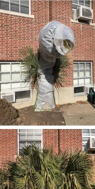 This is from the guy who planted the Sabal Palm in Bridgeport. Looks like it survived this winter just fine. his is DrZnaturally i planted this palm outside in 2009 after much research on the microclimate of that spot the bricks hold so much heat in the winter i would often see flies overwintering there in February it’s very close to Long Island sound the alcove blocks the north wind minuses Dr Franco’s mummy wrap from his book Palms won’t grow here and other myths and I think you’re right about the building leaking heat as 1.5 feet away from the foundation never freezes plus I think for years folks never really knew how resilient Sabal palmettos actually are there are examples of these bosoms growing in Tennessee zone 6 for years and years so i just took a chance