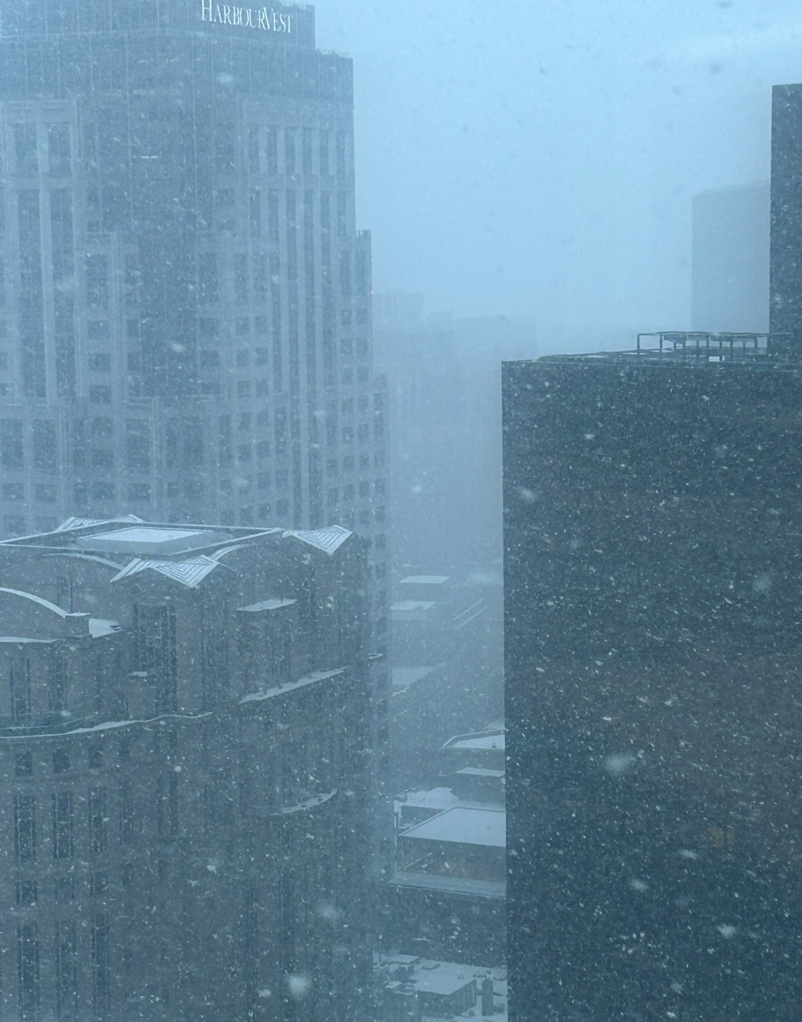 Pounding great dendrites occasional quarters... roads starting to whiten near Fenway