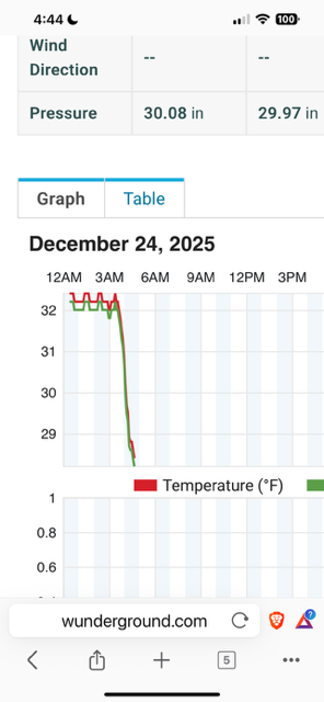 it's approaching 50 here. similar phenomenon - it's in the upper 30s literally a few hundred yards away (and near the bottom of the hill we are on, which is kind of like a little valley).