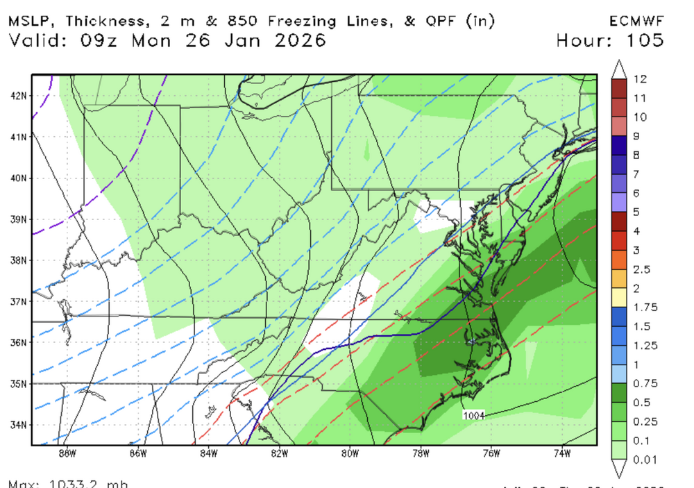 This is a communications nightmare for news outlets. Could be 5" of sleet and minimal icing or half an inch of ice. The 5" of sleet is more likely, but when some models are spitting out significant icing it's hard to ignore knowing that it's better to be prepared for the worst