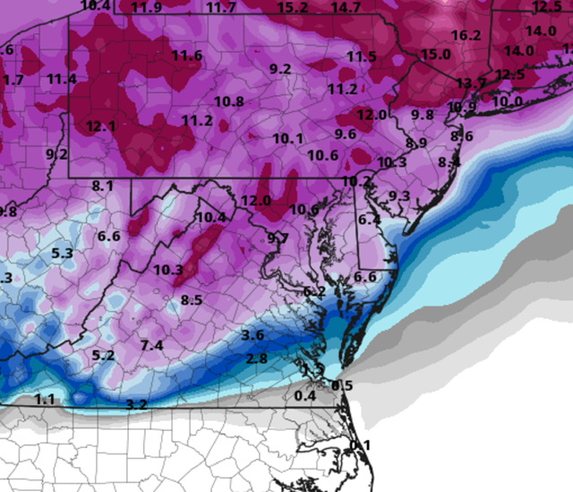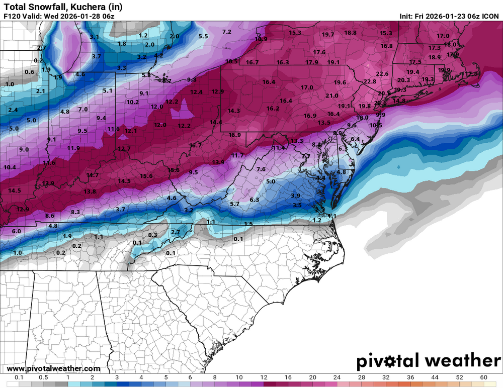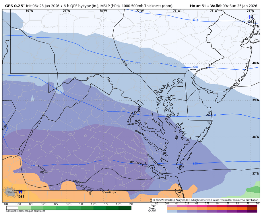 Room also in LWX's forecast for DCA: Saturday Night Snow. The snow could be heavy at times. Low around 17. Northeast wind 3 to 6 mph. Chance of precipitation is 100%. New snow accumulation of 3 to 7 inches possible. Sunday Snow, freezing rain, and sleet. The snow could be heavy at times. High near 27. Northeast wind 8 to 10 mph. Chance of precipitation is 100%. New snow and sleet accumulation of 3 to 7 inches possible. Sunday Night Snow, freezing rain, and sleet before 10pm, then snow and freezing rain between 10pm and 4am, then a chance of snow after 4am. Low around 20. Chance of precipitation is 90%. New snow and sleet accumulation of around an inch possible.