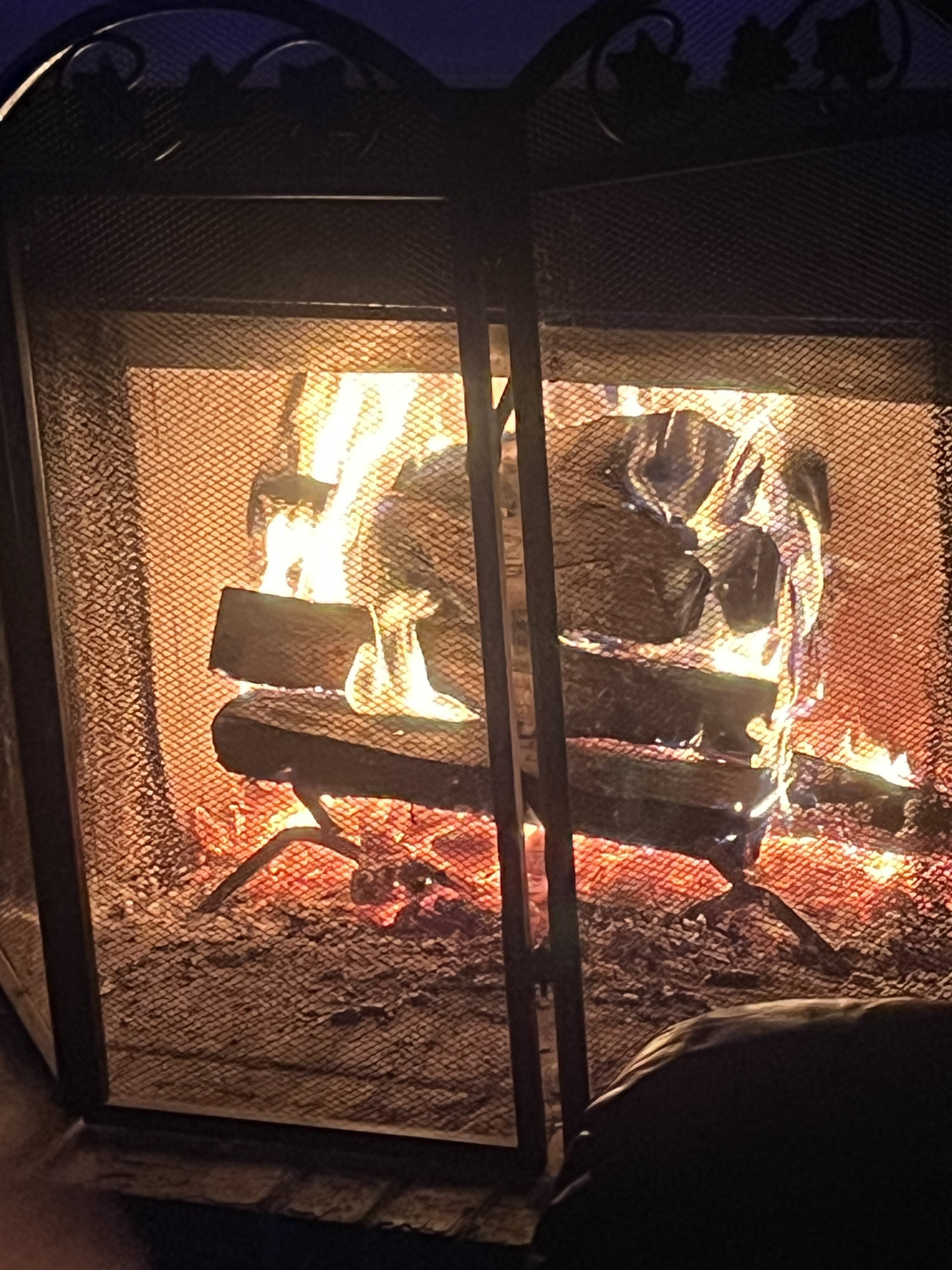 Waiting for daybreak to go clear ice off the unit outside, every time I turn it on it kicks into auxiliary mode but until then, this is what is keeping us warm brought us from 60° inside to 68° in the last 90 minutes. Man, I love a fire place.