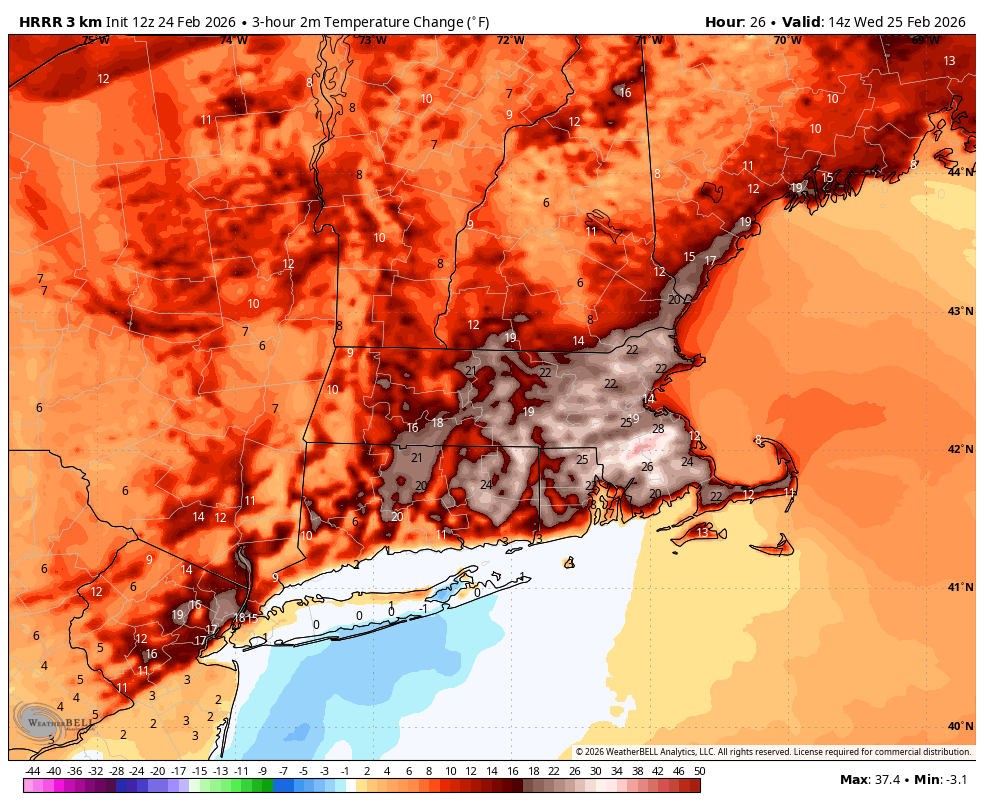Wild WAA temps start in the teens and even some single digits with first flakes then halt up 20 degrees in 2-3 hours , won’t be much road stickage with temps like that on the south coast and valleys. -