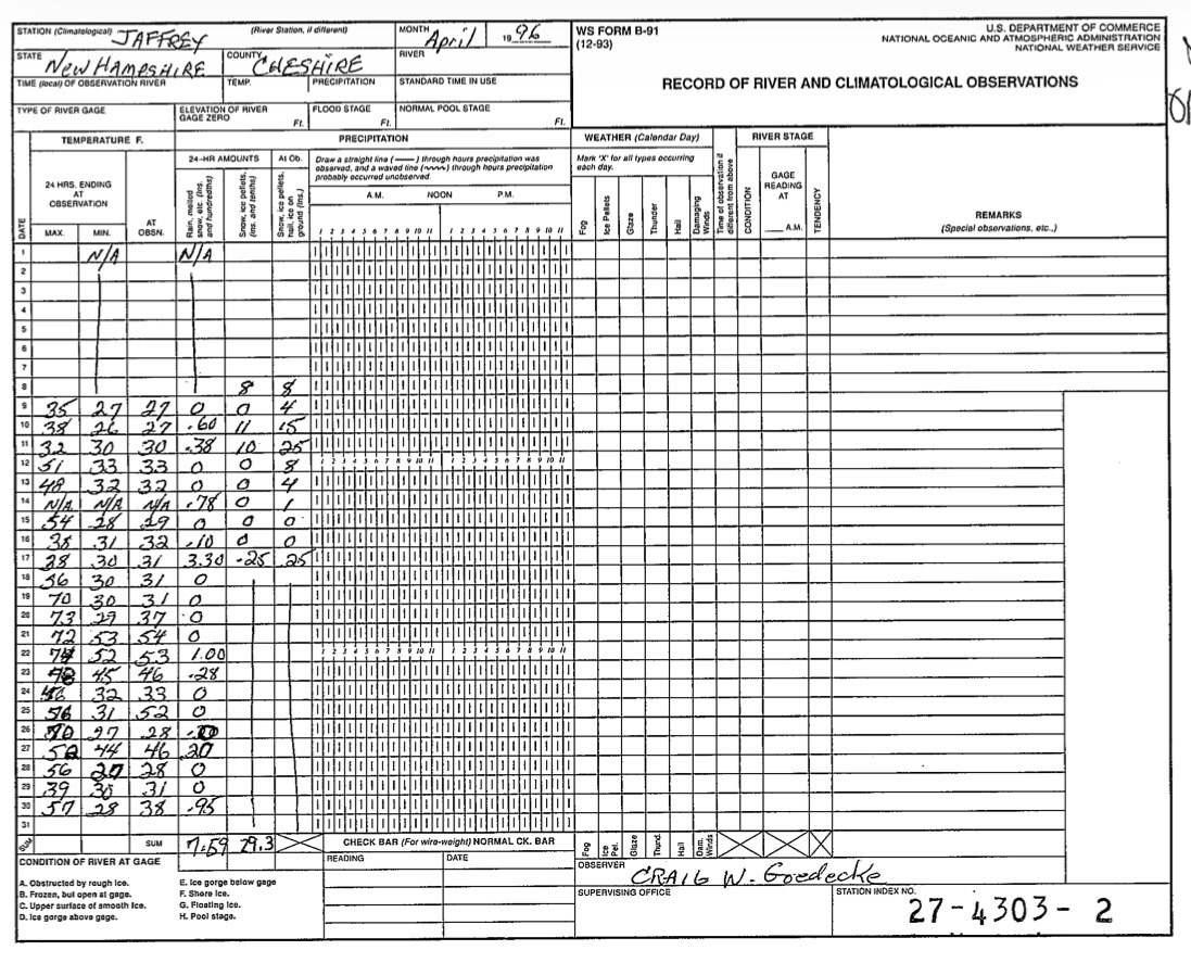 Is that the April record for Jaffrey?