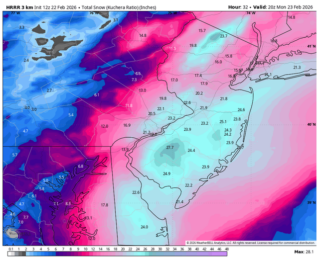 I and @Volcanic Wintermay have a chance at breaking the all-time snow record here in Toms River. Current record was 24.5" from Boxing Day 2010. 24.0" was measured from the Blizzard of 1996. NWS has us for 27" currently