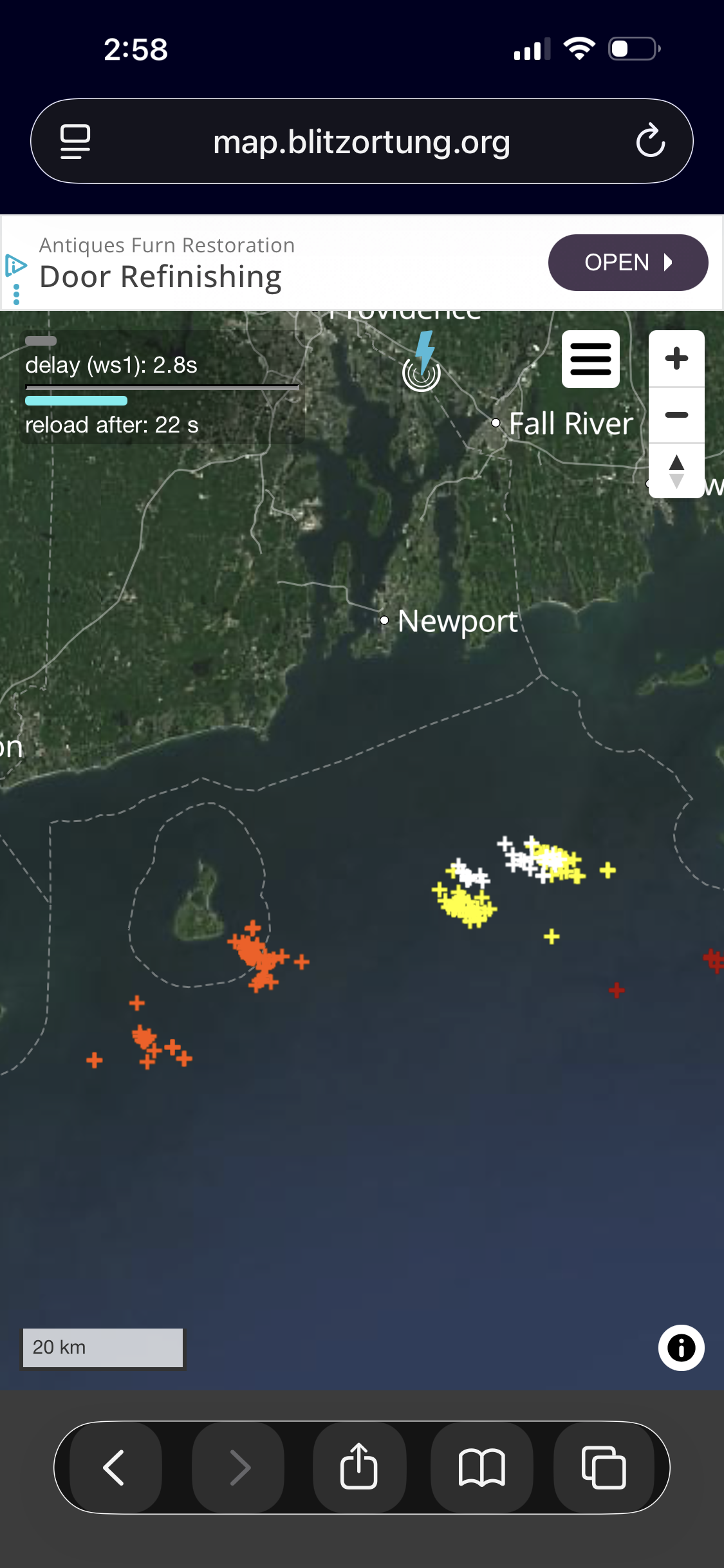 Just catching up on reading all these ob posted for this storm. Attached is the CG plot from around 3am Monday. That is a *lot* of CGs for S+ bands well N in the cold sector of a coastal, looks like several dozen over a 2 hr period. I can't recall that so many near or over SNE for a snowstorm, even the Bliz of 93. On the BOX radar from 257am Mon attached, the uber snow weenies here I bet can answer this question. That much solid 30 dBZ in multiple bands for for a SNE snowstorm? Often it is more peppered dBZ 30-35 within 20-29 dBZ for bands like this, but not so solid. So how does this radar rank for S+ weenie bands? And BOX radar was not running "hot." I checked OKX at the same time and the dBZ matched over SE CT. -