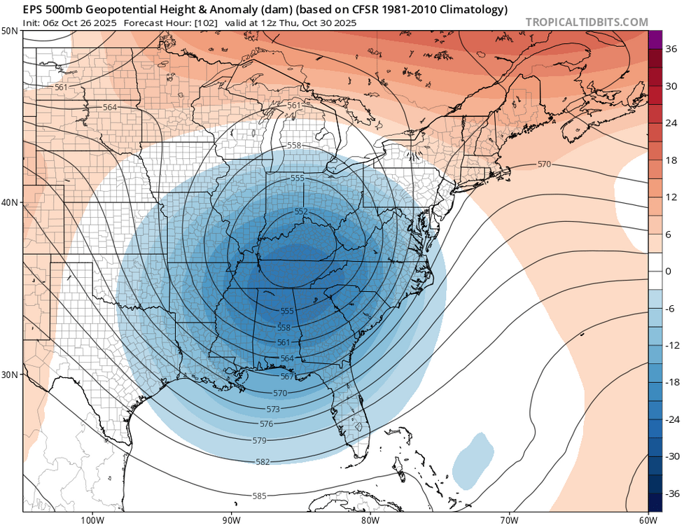 The 6z EPS definitely has a look that midcoast to downeast Maine need to watch for more than subtle/indirect impacts from Melissa. -