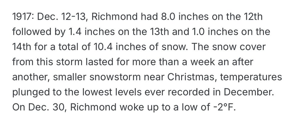 I suspect the winterstorm watch will be dropped to an advisory vs. upgraded to a warning. I was kind of surprised to see them hoist that headline yesterday when there really isn't much model support for a warning criteria snow out of this. We never even had a single nam run that nam'd us either. Looks like a general 2-4" event with maybe a few getting under some heavier banding that could go to 5"+. Looking forward to the thaw! Early December cold/snow almost always ensures a brown Christmas, that's why I wasn't too excited about it happening so early. Of course 1989 was wall to wall frigid the whole month of December and then when the calendar turned to January winter never returned.