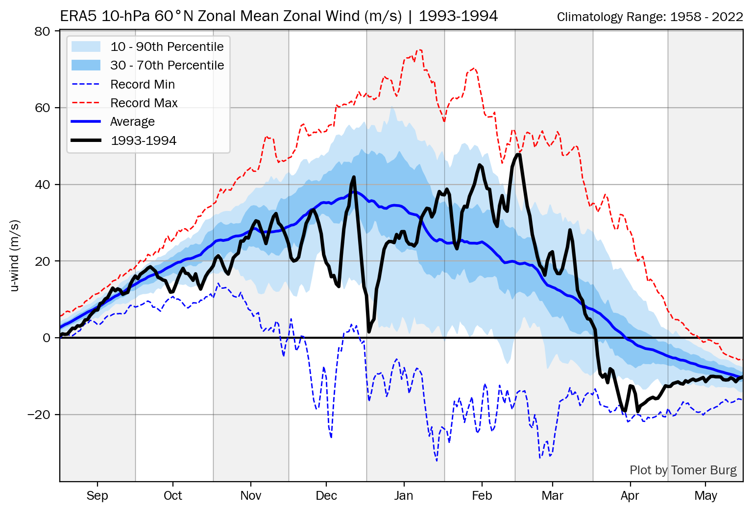 Having a quick restrengthening of the SPV didn’t stop the rest of the winter (through early March) from being cold in these two cases: 2002-3: Jan 17th SSWE followed by avg just 2 weeks later 1993-4: Jan 1st very weak SPV followed by just below avg just 2 weeks later and mainly above avg rest of winter: