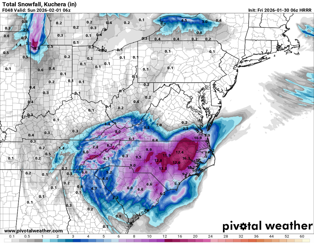 For those who might be interested, here’s my latest projections for 25 select locations along the east coast: https://x.com/tbrite89/status/2017125164824100896 -