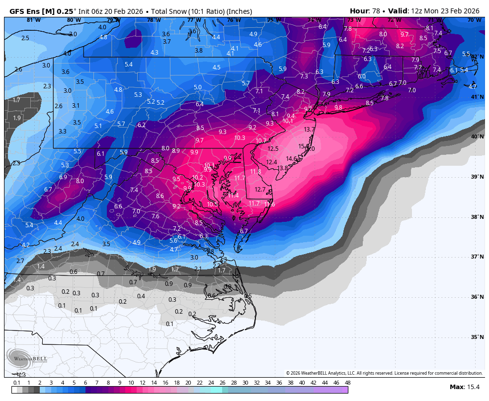 GEFS are loaded once again The bulk of the heavy snows (on GFS) seem to fall in the evening and overnight hours for the sun angle, warm temps crowd.