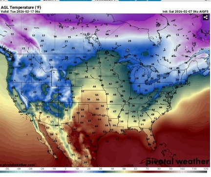 MASSIVE PATTERN CHANGE IMMINENT How do I know this? Buda by Wednesday mid 80s for highs, low 60s for lows. This is far more representative of late April/early May. The Pacific Northwest is going to be demolished by storms. The Sierra Nevada is about to be absolutely ENGULFED by torrential snows and super high winds, think Category Three Hurricane strength at the crests. The models are beginning to suggest this scenario, and I have been living down here in Texas long enough to recognize the patterns. I am going to be loving 73 and humid in Buda at 1am for a change!!!!!!!!!!!!!!!! It is going to utterly transform the game compared to 12 degrees at the same time back in January!!!!!!