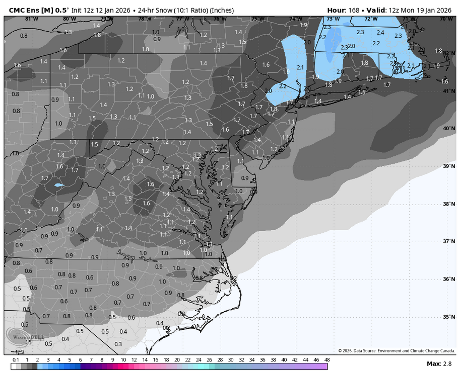 Pretty good consensus sunday-monday out of the 0z CMC-GFS-icon. Wide spread 2-4 inch (higher mountains) cold high ratio stuff.